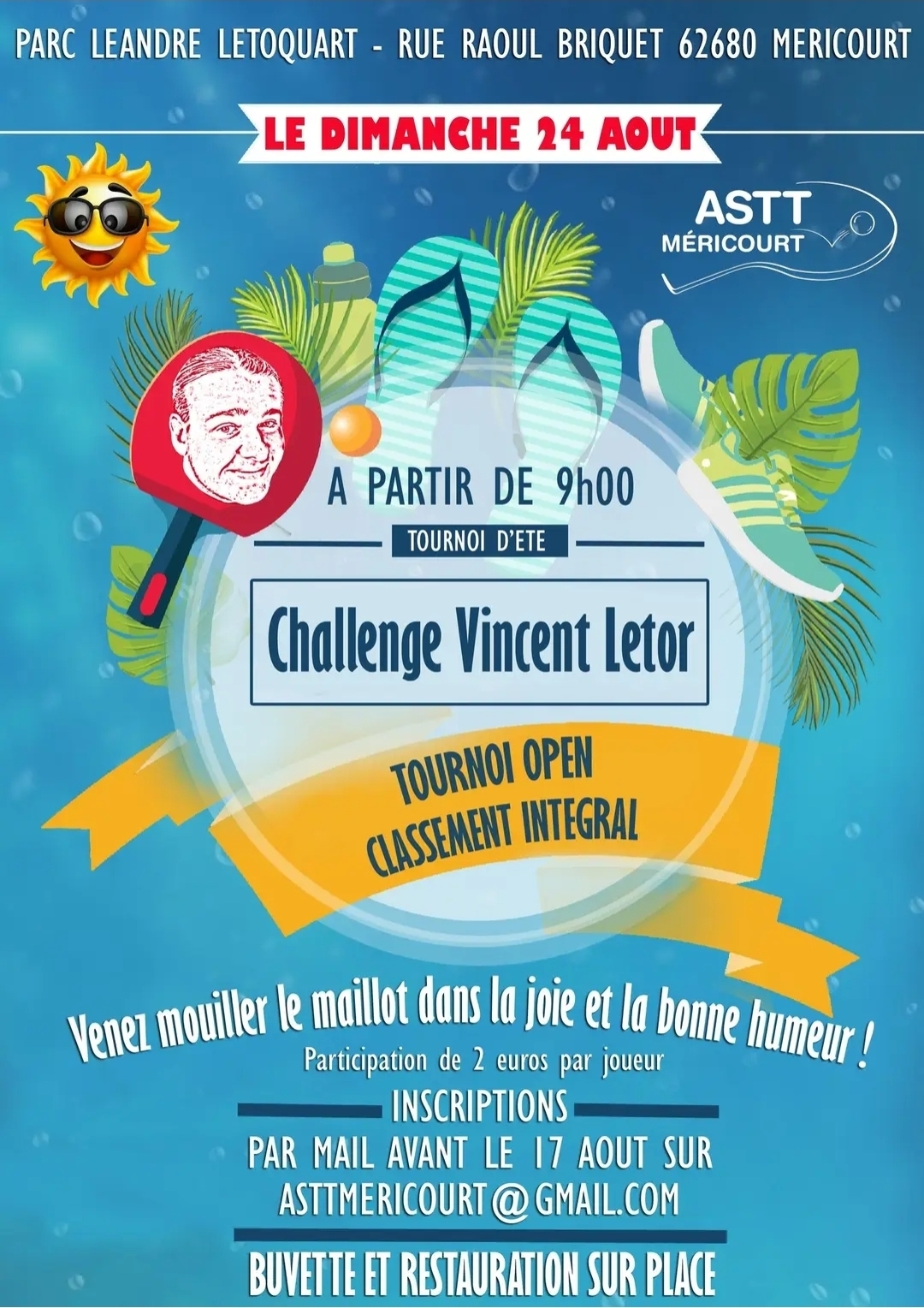 Le tournoi débutera le dimanche 24 août à 9h00 à la salle Raoul Briquet de Méricourt.